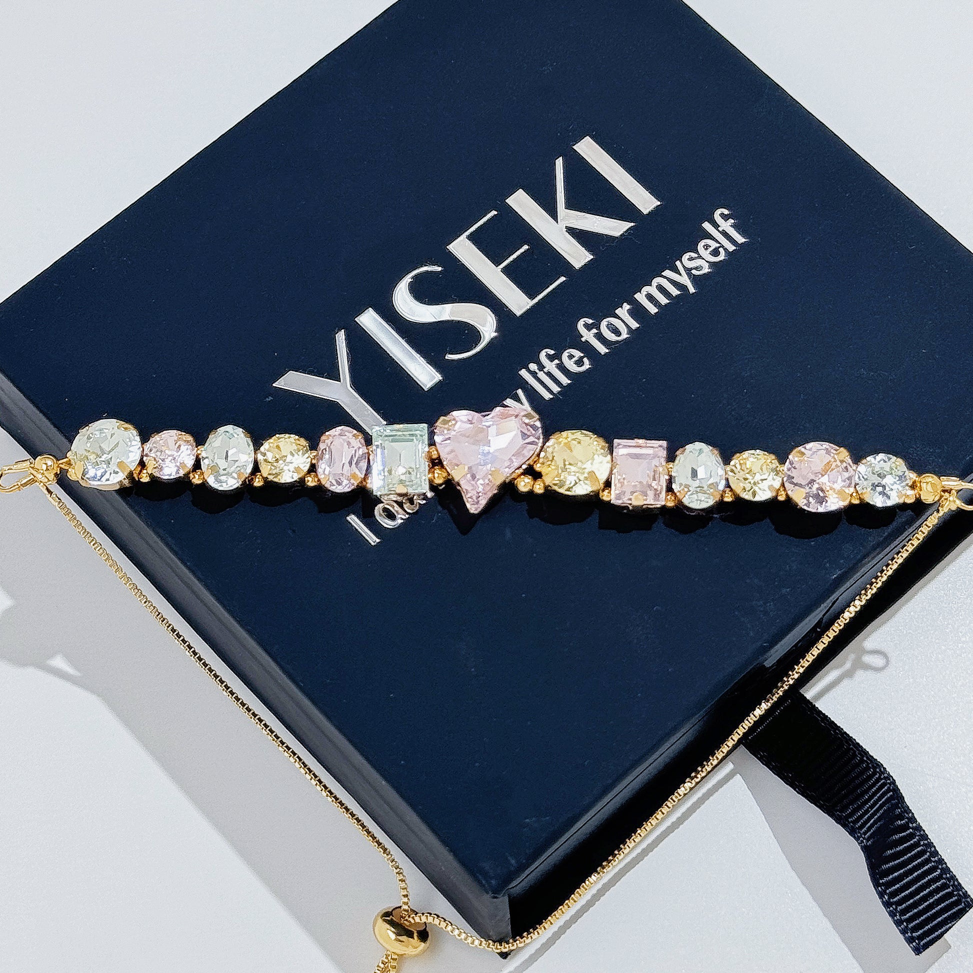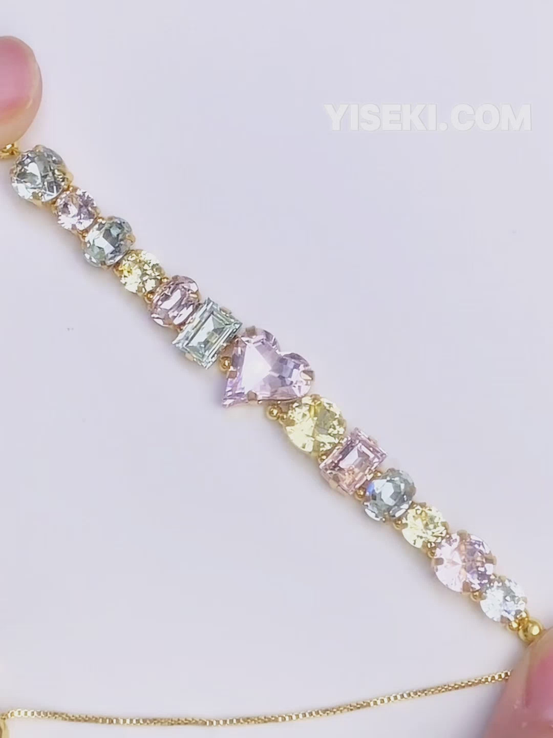 宝石材料:歪みハート13*12mm、クッション10mm、オーバル6*8mm、ステップ6*8mm、ラウンド8mm、ラウンド6mm/長さ:約12CM+20CM/宝石タイプ:クリスタル/材質:金属/留め金タイプ:スライド/ビーズ:2.5mm