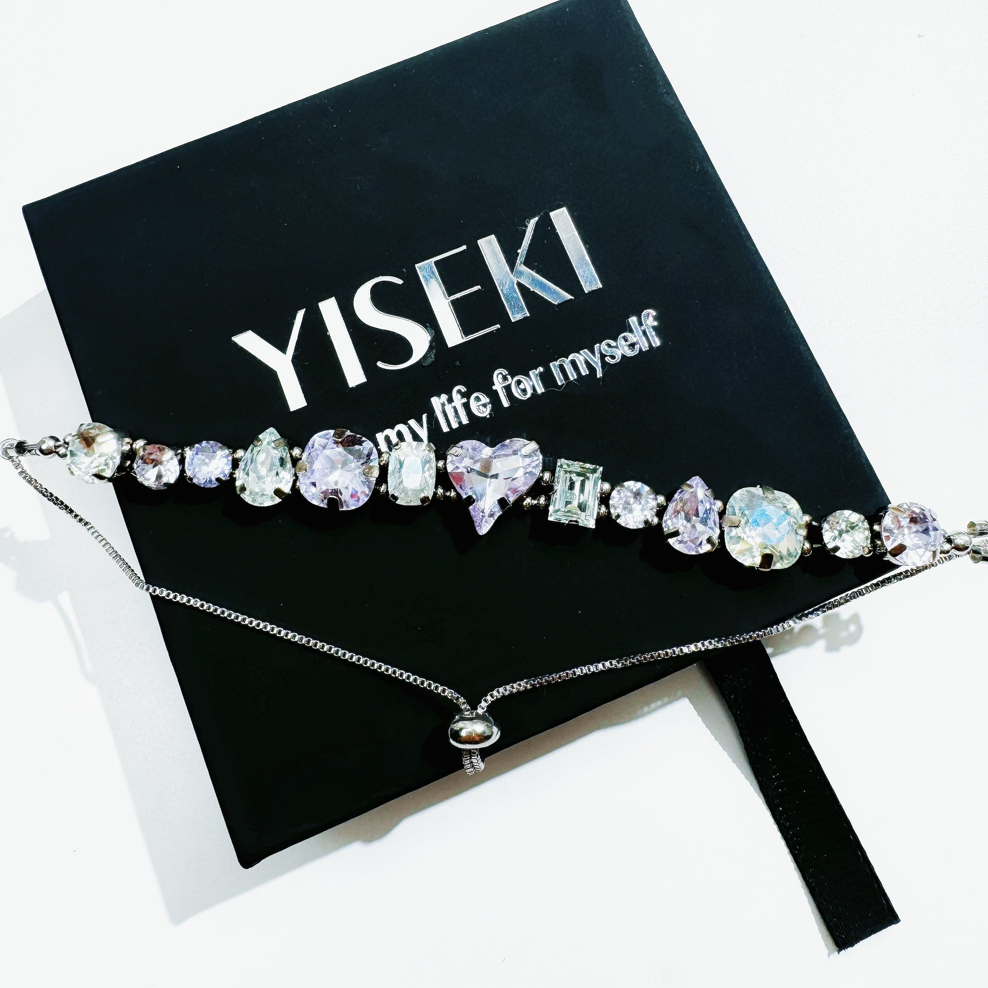 宝石材料:歪みハート13*12mm、クッション10mm、ペア7*10mm、長方形クッショ6*8mm、ステップ6*8mm、ラウンド8mm、ラウンド6mm/長さ:約14CM+6/20CM/宝石タイプ:クリスタル/材質:金属/留め金タイプ:スライド/ビーズ:2.5mm