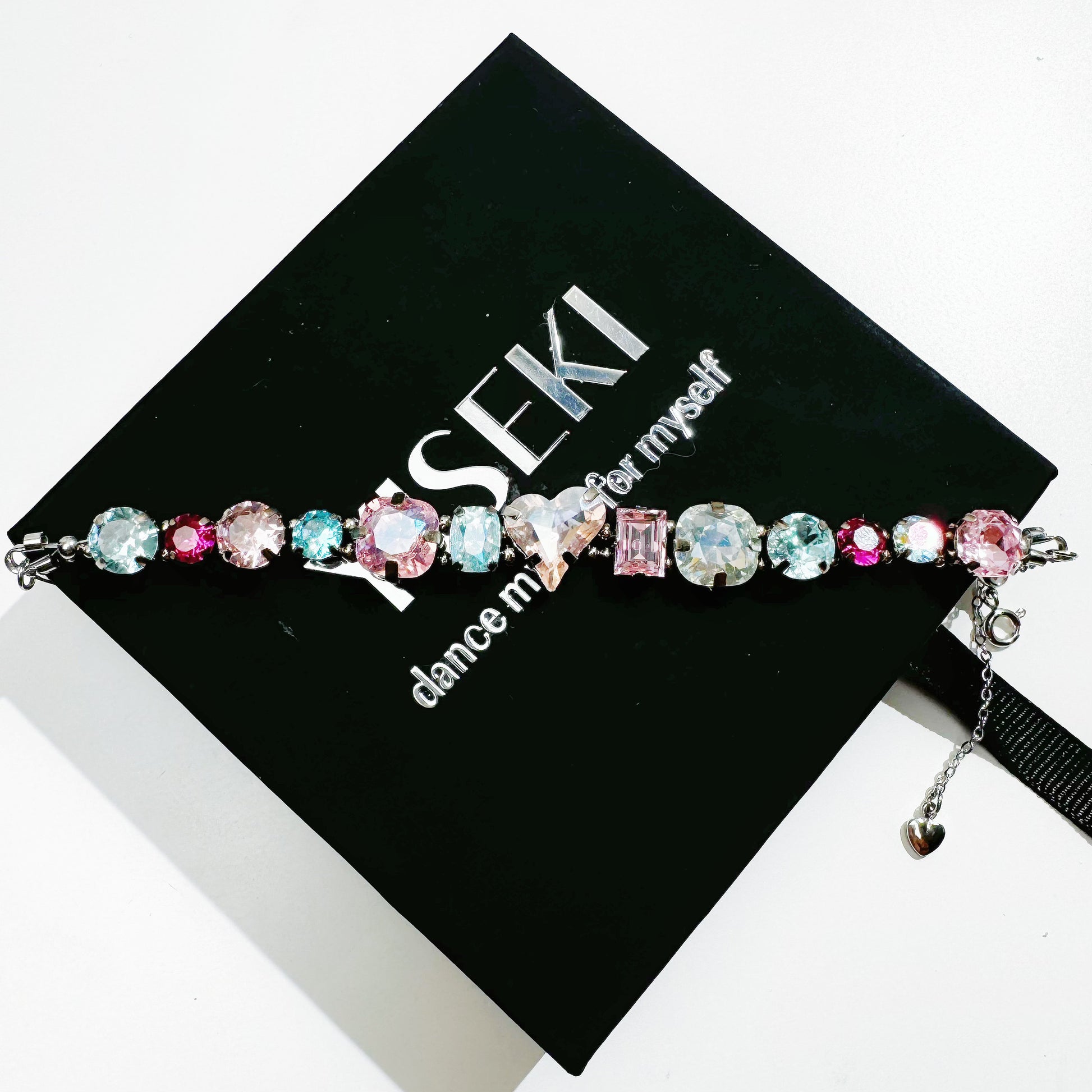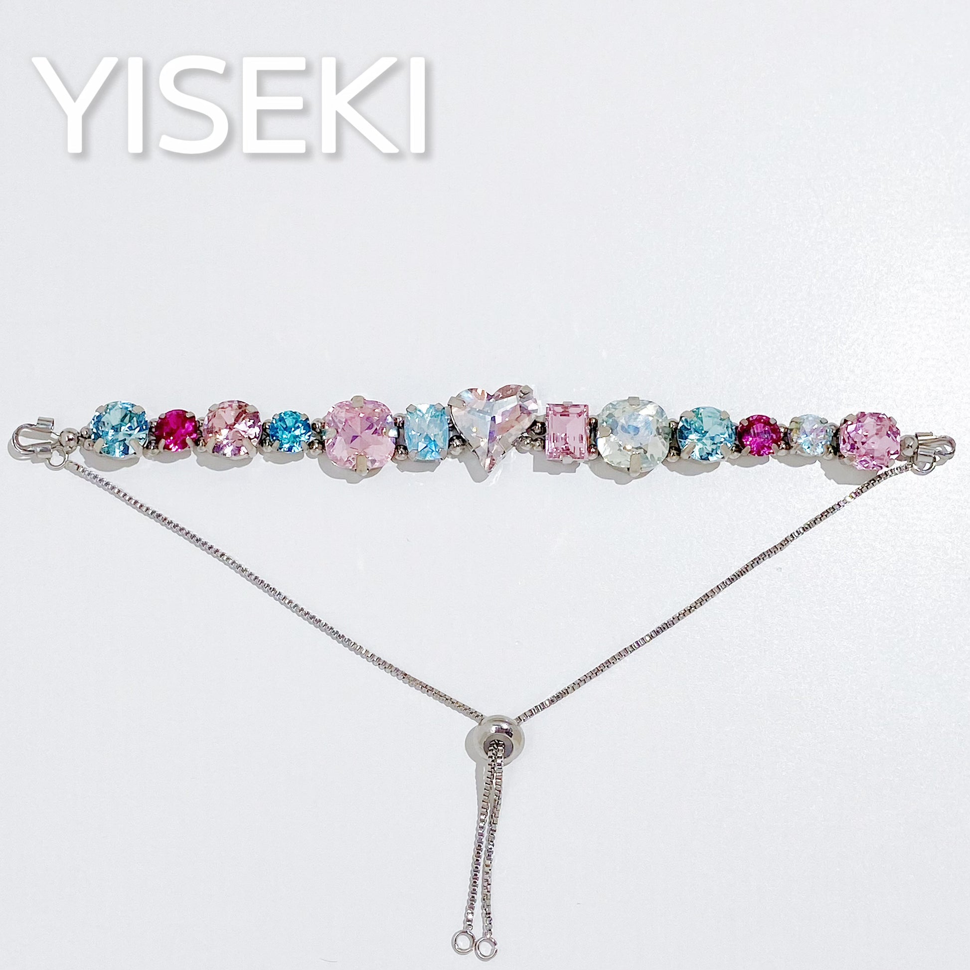 宝石材料:歪みハート13*12mm、クッション10mm、長方形クッショ6*8mm、ステップ6*8mm、バラカット8mm、ラウンド8mm、ラウンド6mm/長さ:約14CM+6/20CM/宝石タイプ:クリスタル/材質:金属/留め金タイプ:スライド/ビーズ:2.5mm