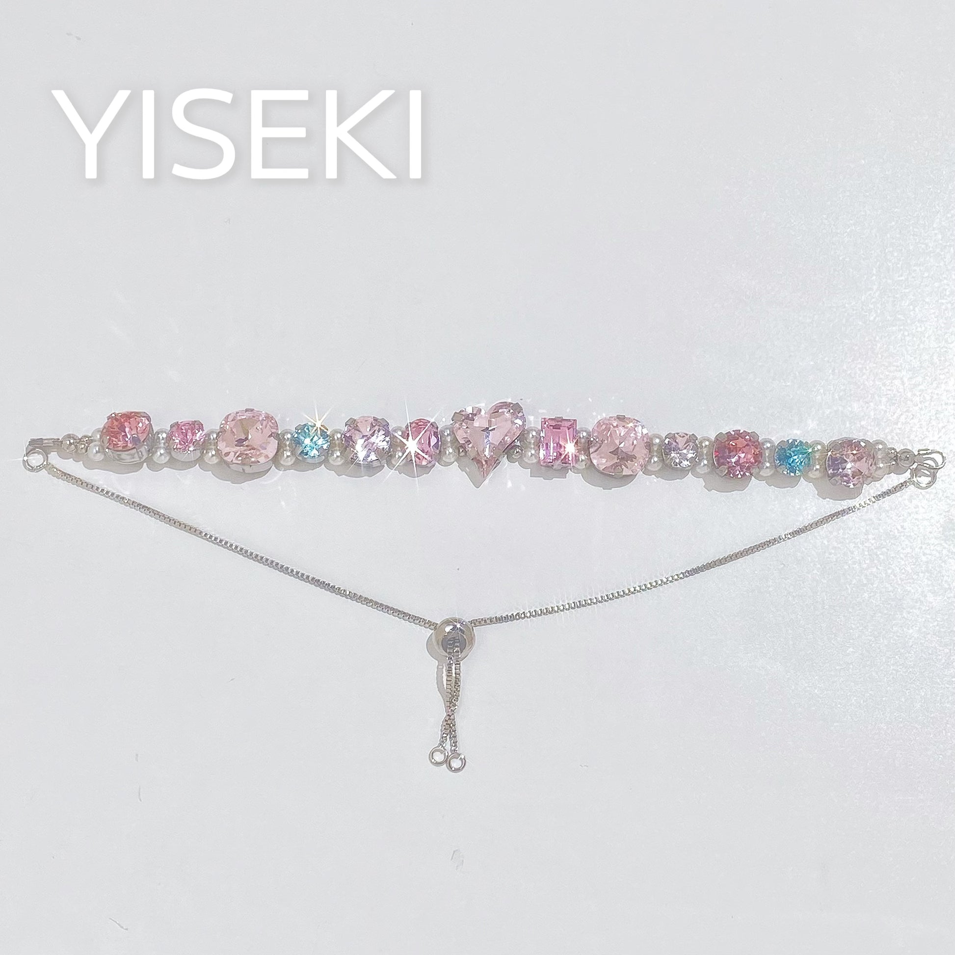 宝石材料:歪みハート13*12mm、クッション10mm、オーバル6*8mm、ステップ6*8mm、ラウンド8mm、ラウンド6mm/長さ:約15CM+6/20CM/宝石タイプ:クリスタル/材質:金属/留め金タイプ:スライド/パール:3mm